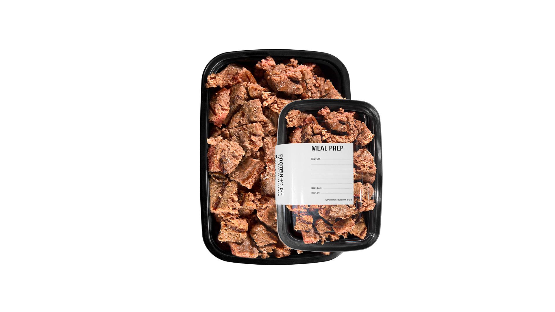 100% Angus Beef Steak*, 6 Egg Whites*, Sweet Potato Rounds. Served with Organic Ezekiel English Muffin. (693 cal / 65 protein, 83 carbs, 10 fat)