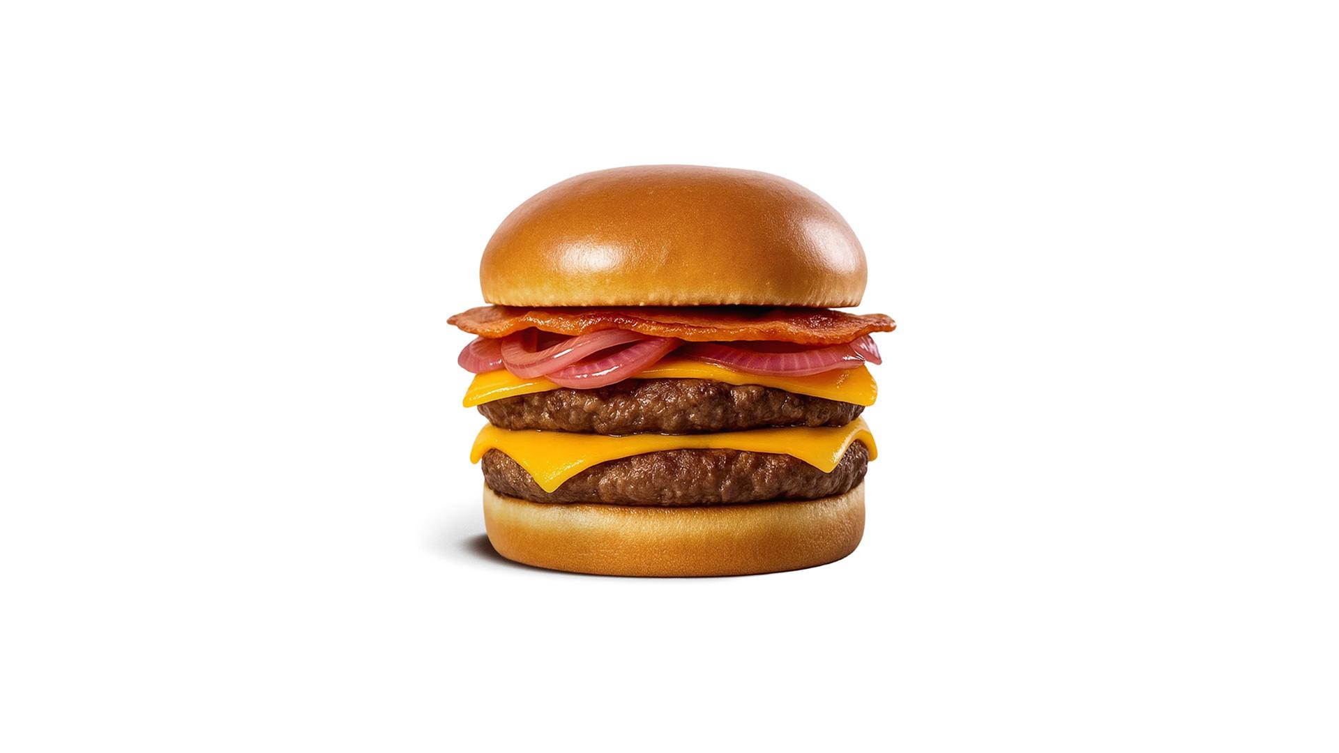 2 Grass-Fed Bison Patties*, Turkey Bacon, Cheddar, Caramelized Onions. Served with Side of Fruit. (822 cal / 84 protein, 48 carbs, 33 fat)