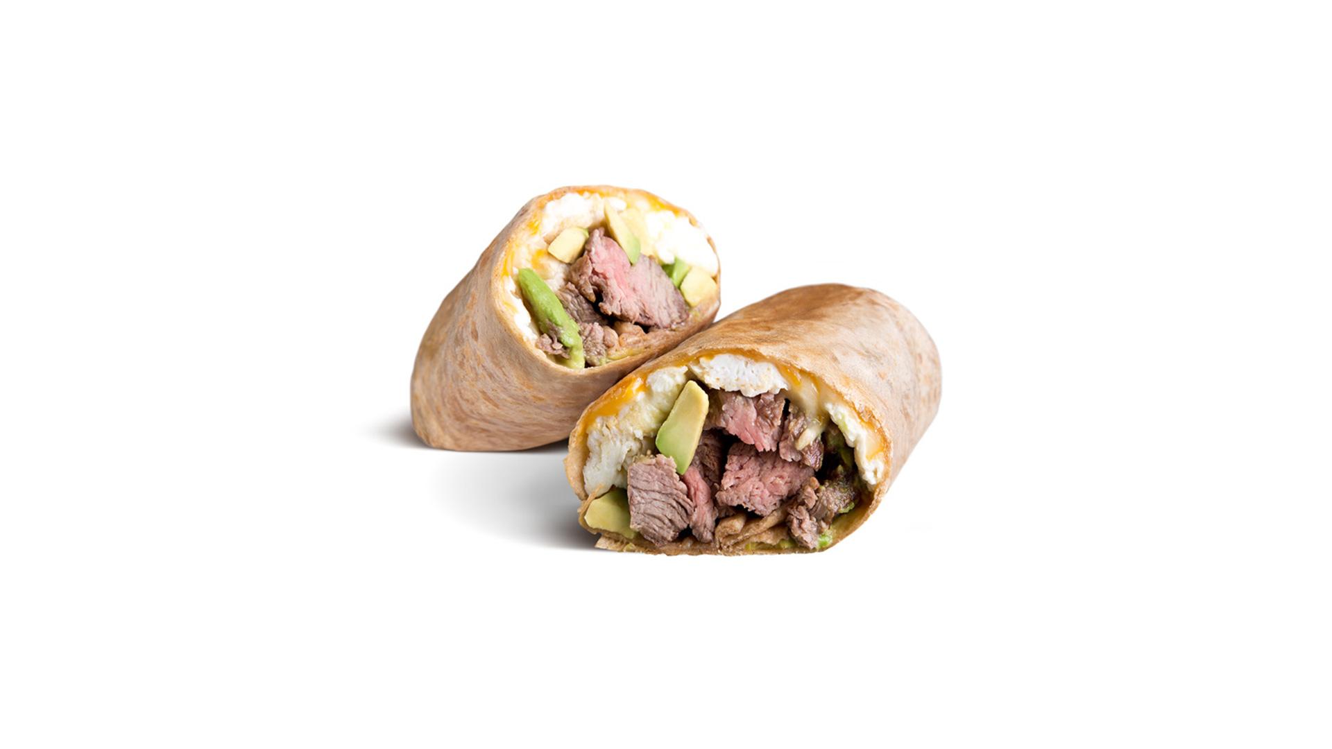 100% Angus Beef Steak*, 6 Egg Whites*, Cheddar, Avocado. Served with Side of Fruit. (891 cal / 76 protein, 60 carbs, 40 fat)