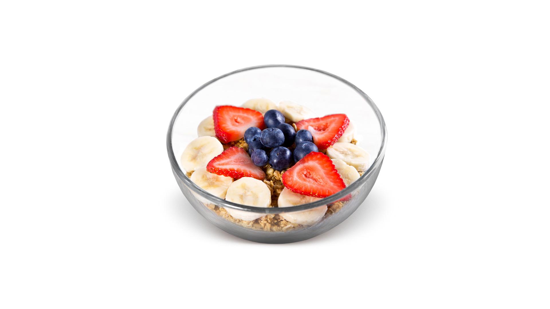 Greek Yogurt. Topped with Purely Elizabeth Organic Gluten-Free Granola, Banana, Blueberries, Strawberries, Organic Honey. (533 cal / 11 protein, 81 carbs, 19 fat)